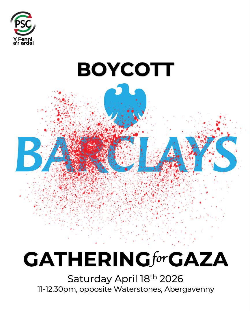 Please join us as we gather for Gaza this Saturday. This week’s theme is “Boycott Barclays” – Barclays is bankrolling Israel’s genocide and apartheid against Palestinians.