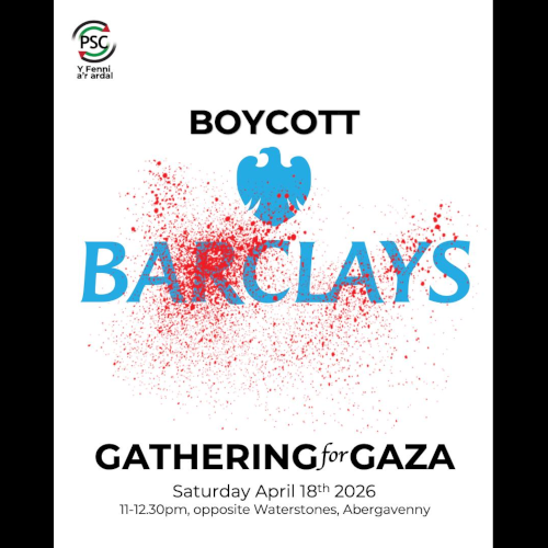 Abergavenny & District PSC holds weekly Gatherings for Gaza in Abergavenny, usually opposite Waterstones, every Saturday between 11:00 and 12:30 There is also a weekly vigil in Monmouth on Wednesdays…
